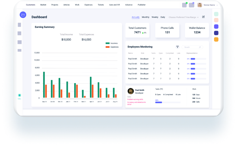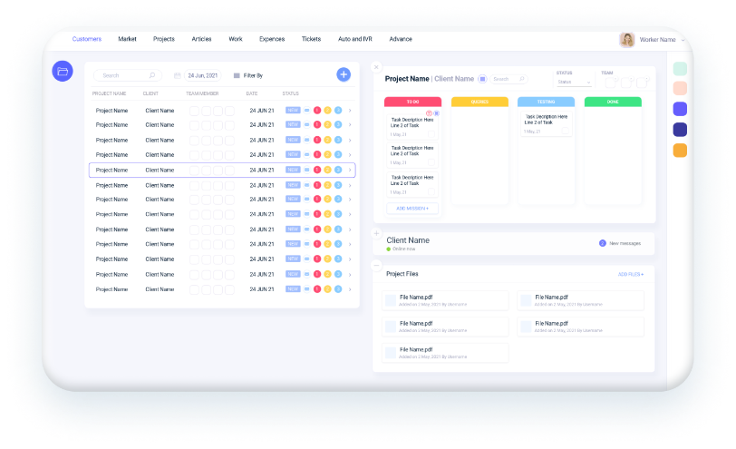 באמצעות המערכת תוכל לתכנן, לנהל ולעקוב אחר כל פרויקט מתחילתו ועד סופו. לוח הבקרה ניתן להתאמה אישית כך שהמידע יהיה מדויק ושקוף עבורך. ניתן להציג ולפלח את הנתונים במגוון רחב של דרכים- תצוגה יומית, שבועית או חודשית, תעדוף משימות, דחיפות ועוד הרבה יותר.